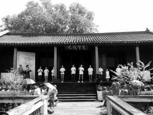 9月8日,东坡书院载酒堂,从中和镇12个村委会(居委会)海选出来的20名“高手”一决雌雄。载酒堂前的载酒亭内,聚集了从各村赶来的数百名乡亲。