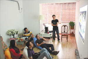 各自点杯冷饮或咖啡,在咖啡馆的小包厢里随意坐着甚至躺着,一台投影仪,一部手提电脑,一位暂时被称为老师的分享者,在愉快轻松的气氛中用准备好的PPT和大家分享自己的知识,这是属于一群年轻人的周末下午时光。他们给这样的活动取了个时髦的名字———真人图书馆。