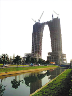 近日,一位网友将苏州正在建设中的“东方之门”照片上传到微博,这座超过300多米高的摩天大楼立刻引来如潮的围观,引爆起网友们丰富的想象力。一些人甚至调侃其造型“就像一条秋裤”。有人则从专业角度认为这种设计非常丑陋,与周边建筑的风格格格不入。一些搜索引擎甚至将其设为热搜词。