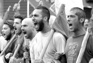 9月8日,希腊抗议者在塞萨洛尼基举行示威活动,反对政府即将推出的新一轮紧缩措施。 希腊总理萨马拉斯当天表示,希腊目前处于退出欧元区的边缘,实施新一轮紧缩措施是重建国家信誉、摆脱债务危机的必由之路。 新华社/路透