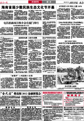 海南日报 本省新闻综合 003 2012-09-101 2012年09月10日 星期一