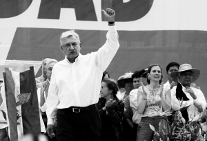 9月9日,在墨西哥首都墨西哥城的宪法广场,墨西哥左翼政党民主革命党总统选举候选人洛佩斯·奥夫拉多尔(前)参加集会。 洛佩斯·奥夫拉多尔和数万名支持者当日在墨西哥城举行集会,抵制由墨联邦选举法院宣布的大选结果。奥夫拉多尔在集会上表示,由于革命制度党在选举中存在贿选和竞选经费超支等舞弊行为,他不承认革命制度党候选人培尼亚·涅托为合法有效的新一届总统,要求宣布选举无效。 新华社/路透