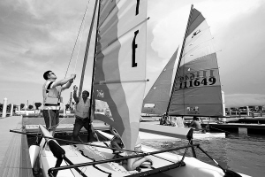 | 9月8日下午,在海口新埠岛国际游艇会码头,人们正在体验HOBIE帆船的独特乐趣。 本报记者 张杰 摄 |