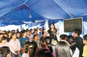 开课了 云南彝良地震灾区“帐篷学校”开课。 新华社发