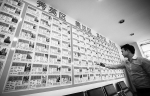 | 九月十一日,在海口一家正规的房产中介公司,工作人员在记录已售的房子。