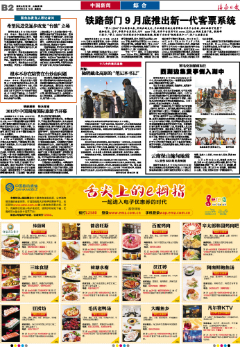 海南日报 中国新闻综合 010 2012-09-131 2012年09月13日 星期四
