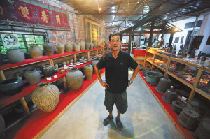 | 袁金华站在自己的“白沙河谷”博物馆中。 新华社记者 郭程 摄 |