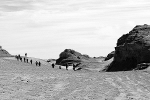 9月17日,2012“激情穿越柴达木”徒步探险活动在青海省海西蒙古族藏族自治州柴达木盆地南八仙魔鬼城正式开赛,来自全国各地的30名徒步爱好者报名参加了本次比赛。图为徒步队员在行进中。 新华社发