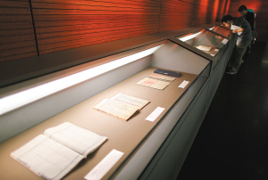 | 9月17日,观众在北京国家图书馆参观关于钓鱼岛的古籍文献。