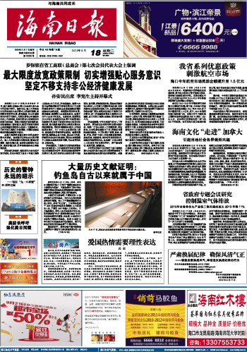 海南日报 头版 001 2012-09-181 2012年09月18日 星期二