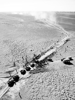 18日,中国环塔拉力赛结束了第四赛段全长190.86公里的比赛。此赛段将新疆福海县乌伦古湖和吉力湖串联起来,从空中俯瞰赛道,景色壮美。 新华社发