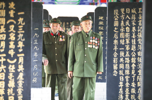 | 老革命军人在安徽烈士陵园参观烈士碑林。 |