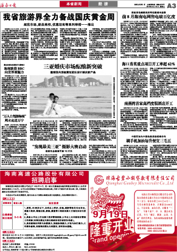 海南日报 本省新闻经济 003 2012-09-191 2012年09月19日 星期三