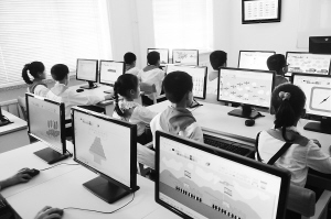 9月19日,朝鲜平壤仓田小学的学生在多媒体电教室上课。 平壤仓田小学在1954年创立之初为平壤第二中学,后于2002年改为平壤仓田小学。仓田小学开设国文、数学、英语、音乐、美术、体育、历史、手工等课程,学生上午上课,下午在学校或少年宫参加“第二课程”兴趣小组活动。朝鲜实行11年制义务教育,幼儿园学前班1年,小学4年,中学6年。 新华社记者 杜白羽 摄