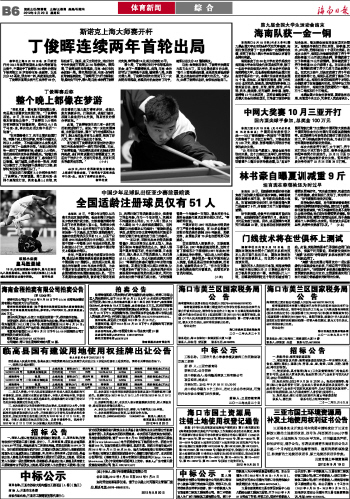 海南日报 体育新闻综合 018 2012-09-201 2012年09月20日 星期四