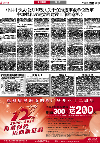 中共中央办公厅印发《关于在推进事业单位改革 中加强和改进党的建设工作的意见》