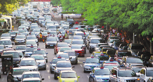 | 九月二十二日是“城市无车日”,在海口海秀东路段,不少市民趁周末纷纷驾车来领取月饼,导致该路段出现了拥堵现象。