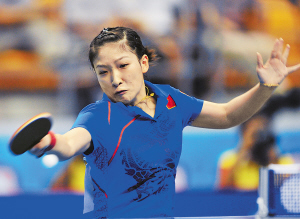 | 22日,中国选手刘诗雯在比赛中回球。 新华社发