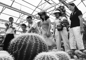 | 游客与植物园的物种亲密接触,了解热带植物种类,增长环保知识。 海南日报记者 古月 摄