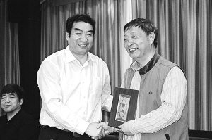 | 在“中国小小说南方论坛”期间,《小小说选刊》主编杨晓敏向韩少功颁发该刊顾问聘书。 |