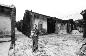 | 下山陈村村长陈如楷在村庄院落中。 |
