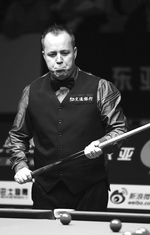 9月23日,在斯诺克上海大师赛决赛中,希金斯在落后五局情况下,以10:9逆转特鲁姆普夺冠。图为希金斯在比赛中。 新华社发