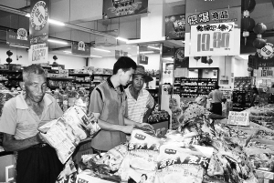 超市有生鲜食品区、加工食品区、日化用品区、服装区等十几个专区。超市负责人介绍,超市商品种类1.1万种,其中有6000多种是镇上以前没有的,一种商品有高中低不同的档次;与传统杂货铺相比,超市里商品选择的范围大,价格相对比较便宜,更为重要的是,商品都是正牌货,质量有保障,农民无论买什么商品都有购物小票,出现质量问题不用担心。