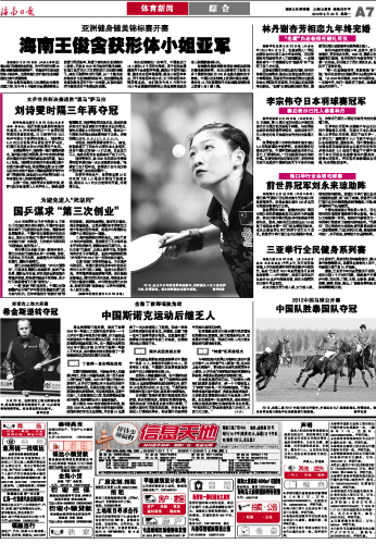 | 海南日报 体育新闻综合 007 2012-09-241 2012年09月24日 星期一 |