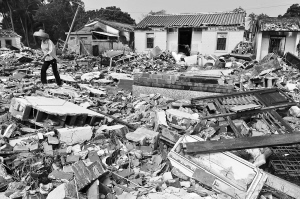 | 重建前 2010年10月,遭受洪水袭击的江村变成废墟。 本报记者 王凯 摄 |
