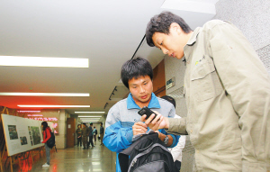 10月10日,北京林业大学的学生被鹦哥岭青年团队的事迹和精神感动。会后一位学生(左)索要报告团成员联系方式,他说:“我要到鹦哥岭当志愿者!”。