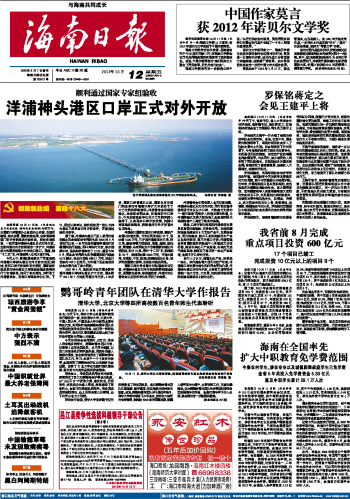 海南日报 头版 001 2012-10-121 2012年10月12日 星期五