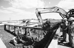 10月12日,工程车辆在上海迪士尼项目施工现场开挖轨道交通迪士尼乐园站的地下空间。 上海迪士尼项目建设工程稳步推进,年内将完成投资100亿元。上海迪士尼度假区将于2015年底建成开园,包括迪士尼乐园、主题酒店、零售餐饮娱乐区、人工湖、停车场和交通枢纽等。 新华社记者 裴鑫 摄