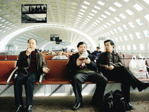 | 莫言(左)与韩少功、张炜(右)在德国候机。 韩少功供图 |