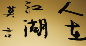 | 莫言在海南挥毫“人在江湖”。 关向东 摄 |