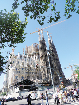 | 西班牙百年未完工的神圣家族大教堂,是游客必到的热门景点。 |