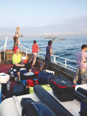 | 碧海蓝天中享受海钓的乐趣。 张飞 摄 |