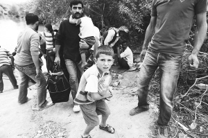 在土耳其南部哈塔伊省与叙利亚交界的奥龙特斯河,一名叙利亚男孩乘小船登陆土境内。据联合国统计,已有将近30万人从叙利亚出逃避难。 新华社发