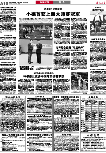海南日报 体育新闻综合 010 2012-10-151 2012年10月15日 星期一
