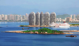 2002年,蜚声岛内外的三亚凤凰岛还只是一座大海礁盘中吹填的人工岛雏形(小图)。 如今的凤凰岛(大图),已建成的国际邮轮港拥有8万吨级国际邮轮码头,并配套近万平方米、设有12个边检通道的现代化客运联检楼,可一次性接待3000名国际游客入境,年接待游客能力可达到60万人次以上。 本报记者 宋国强 张杰 摄影报道