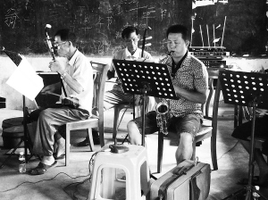村里有一些乐器爱好者,平时经常聚在一块吹吹打打。时间久了,大家都觉得应该组成一个演出队,抽空排练琼剧,为村民们提供娱乐。