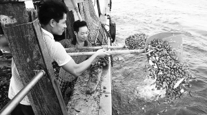 10月19日,儋州海科养殖有限公司在北部湾192公顷养殖海域投放芒果螺苗。经过半年自然养殖后,这些芒果螺即可收获上市。 这些螺苗依靠海底微生物,无需投放饲料养殖,不必竖杆围网,不改变海域属性,不影响海上船只来往。这种养殖方式具有粗放、成本低、生态环保等特点,有利于迅速扩大养殖规模,有较高的经济效益和社会效益,对调整我省海水养殖业结构具有示范意义。 本报记者 李英挺 摄影报道