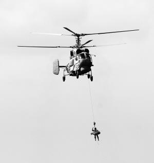 | ↑ 搜救直升机营救“落水人员”。 |