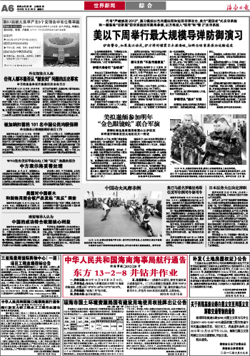 海南日报 世界新闻综合 006 2012-10-201 2012年10月20日 星期六