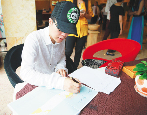 日前,李玉刚在海口结束第二届“海口之春”旅游艺术节演出后,为海口题写“海口,一座让人放松的城市。再会,海口之春。”寄语。 莫漠 摄
