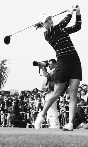 | 从高端到平民,海南高尔夫之路越走越宽。图为2010年海口观澜湖世界职业明星邀请赛冠军———墨西哥选手奥查娅在比赛。古月 摄 |