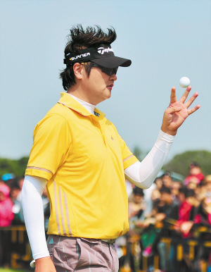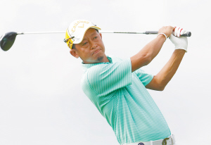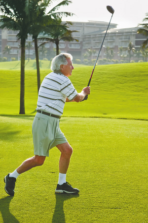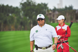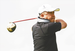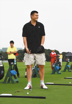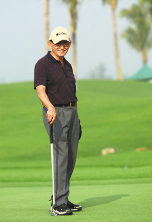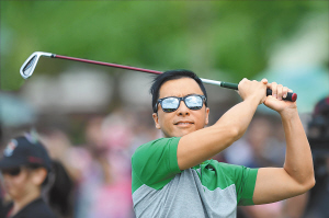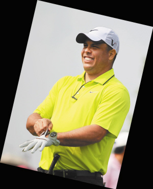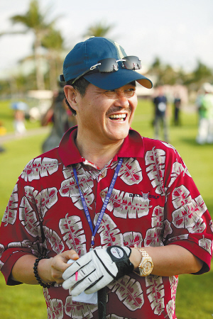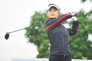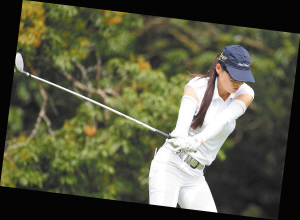 电影《佐罗》主演、好莱坞影星凯瑟琳·泽塔·琼斯在海口挥杆。