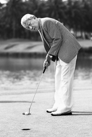 | 海口市云龙镇的台达高尔夫球会,球场设计者陈清泉在阳光下享受高球乐趣。