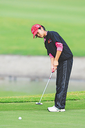 不过,有妈妈陪同并不意味着小球员娇气。陈忱说:“能让孩子打高尔夫球的家庭经济状况都比较好。和这些孩子接触1个多月后,我认为他们个个能吃苦,身上没有娇骄二气。在打练习赛时,没有球童陪同,50多斤重的球包小球员们要自己扛。打完18个洞要走10多公里,他们就拉着50多斤的球包走10多公里。特别是拉着球包上果岭的时候,他们要花很大的劲才能上去。”