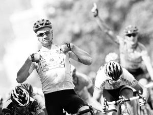 | 23日,谢列布里亚科夫率先冲刺第四赛段终点。