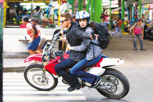| 主演杰瑞米(左)与蕾切尔在马尼拉街头骑摩托车狂奔 |